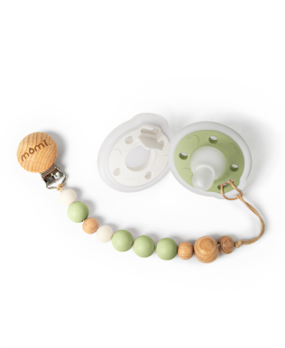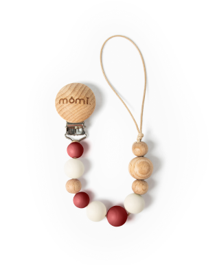 To clean the mōmi pacifier, we recommend washing with a soft brush in warm, soapy water. It can also be sterilized in boiling water.